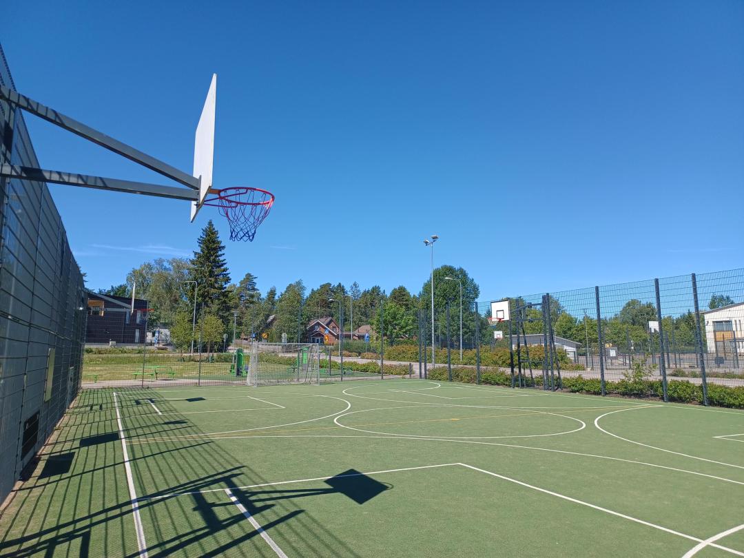 Ulkokuntoilupaikka, kaksi koripallokenttää, futsal-kenttä, talvella luistelukenttä