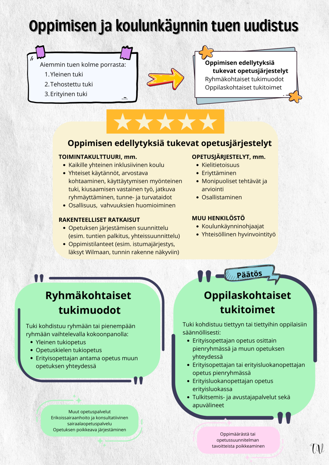 järjestetään ensisijaisesti ryhmäkohtaisena. Siihen on oikeus kaikilla oppilailla. Lukuvuosi 2025-2026 on siirtymäaikaa.Tuen päätökset tarkistetaan lukuvuoden 2025–2026 aikana vastaamaan uutta lainsäädäntöä. Näistä kerroimmekin jo hieman edellisessä Kartsissa.