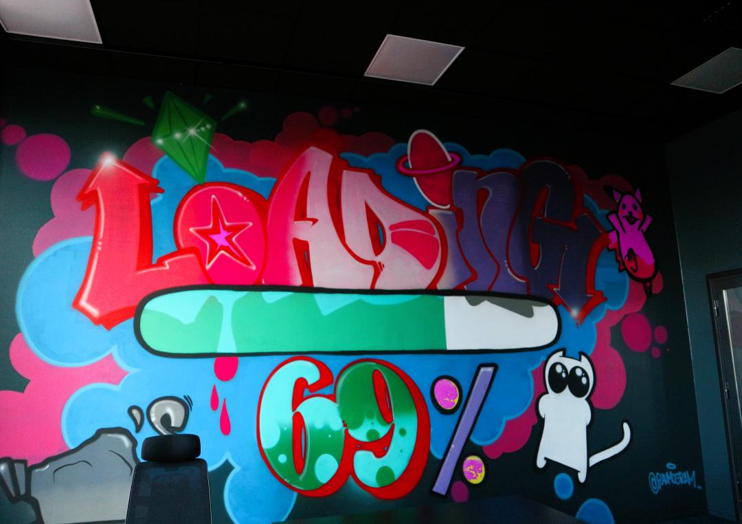 Den sprejmålade väggen i ungdomslokalen har de unga fått vara med och planera. Bild: Vanda stad / Sofia Åberg