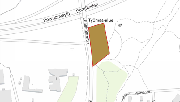 Arbetsområdet är beläget i närheten av hundparken. Den norra porten till hundparken kommer under arbetets gång att användas enbart som serviceväg. Hundparkens användare kan använda de övriga portarna, i vars närhet det även finns officiella parkeringsplatser. Området framför den norra porten