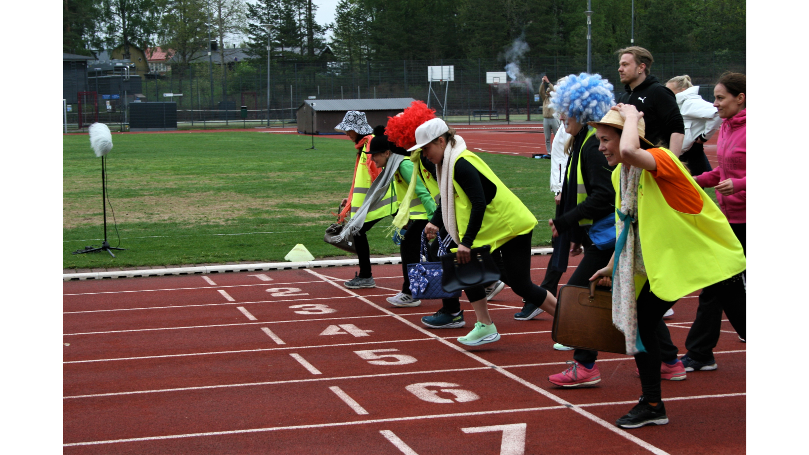 Till sist träffar jag gymnastiklärarna Camilla Nyman och Sabina Huikuri från Dickursby skola. Huikuri berättar att de i skolan endast övat en gång till skyttelstafetten. För grenarna som även springs under stafettkarnevalen som ordnas 19–20.5 i Helsingfors övas det tre till fyra veckor innan.