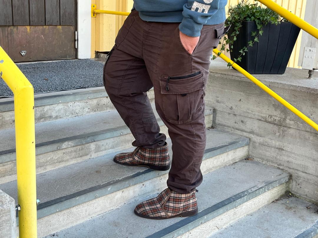 Lindqvist berättar att han endast använder Reino-skorna av Finlayson. Enligt honom är varken barnen eller frun särskilt förtjusta i skorna. Foto: Sofia Åberg / Vanda stad.