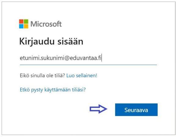 - När du har laddat ner välj "Nästa" (Seuraava) på din datorskärm.