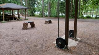 Hanaböle träsks utemotionsplats ligger bredvid lekplatsen för barn i närheten av stranden.