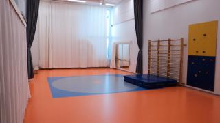 Grundutrustningen består av ribbstolar, gymnastikringar och klättringsvägg. I salen finns också balettstång och en liten spegel.